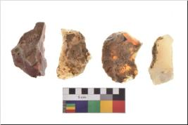 | Description / विवरण | There are n-4 of utilized flake cores. Out of them three are made up of Quartxite and one is made up of Sandstone.There are multidirectional irregular dominant scar pattern on both dorsal and ventral face of the cores. |