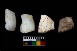 | Description / विवरण | There are n-4 of utilized cores. There are multidirectional irregular dominant scar pattern on both dorsal and ventral face of the cores. |