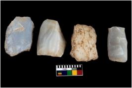 | Description / विवरण | There are n-4 of utilized cores. Out of them 2 are made up of Chalcedony, 1 is made up of Agate and 1 is made up of Chert. There are multidirectional irregular dominant scar pattern on both dorsal and ventral face of the cores. |