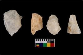 | Description / विवरण | Specimen of a cores with few broad fluted marks. Some of them are tapering at one end. Few are with sharp edges. |