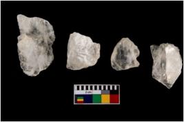 | Description / विवरण | Specimen of a cores with few broad fluted marks. Some of them are tapering at one end. Few are with sharp edges. |