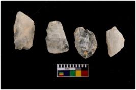 | Description / विवरण | Specimen of a cores with few broad fluted marks. Some of them are tapering at one end. Few are with sharp edges. |