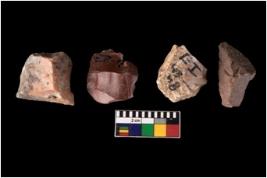 | Description / विवरण | Specimen of fluted cores showing impressions of blades removed from almost all the sides. |