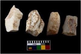 | Description / विवरण | There are n-4 of utilized cores. There are multidirectional irregular dominant scar pattern on both dorsal and ventral face of the cores. |