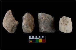 | Description / विवरण | There are n-4 of utilized cores. There are multidirectional irregular dominant scar pattern on both dorsal and ventral face of the cores. |