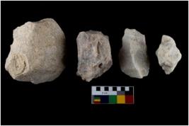 | Description / विवरण | There are n-4 of utilized cores. There are multidirectional irregular dominant scar pattern on both dorsal and ventral face of the cores. |