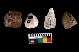 | Description / विवरण | Specimen of fluted cores showing impressions of blades removed from almost all the sides. |