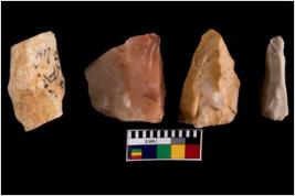 | Description / विवरण | Specimen of fluted cores showing impressions of blades removed from almost all the sides. |