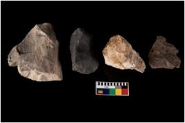 | Description / विवरण | Specimen of fluted cores showing impressions of blades removed from almost all the sides. |