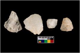 | Description / विवरण | Specimen of a cores with several broad fluted marks. Some of them are tapering at one end. |