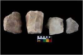 | Description / विवरण | There are n-4 of utilized cores. There are multidirectional irregular dominant scar pattern on both dorsal and ventral face of the cores. |