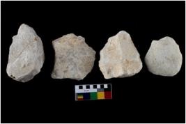 | Description / विवरण | There are n-4 of utilized cores. There are multidirectional irregular dominant scar pattern on both dorsal and ventral face of the cores. |