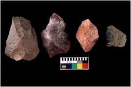 | Description / विवरण | Specimen of fluted cores showing impressions of blades removed from almost all the sides. |