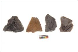 | Description / विवरण | There are n-4 of utilized cores. There are multidirectional irregular dominant scar pattern on both dorsal and ventral face of the cores. |