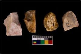 | Description / विवरण | Specimen of fluted cores showing impressions of blades removed from almost all the sides. |