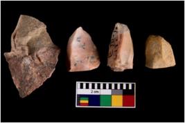 | Description / विवरण | Specimen of fluted cores showing impressions of blades removed from almost all the sides. |