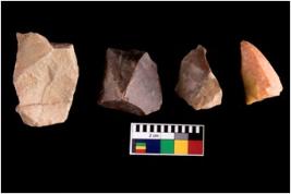 | Description / विवरण | Specimen of fluted cores showing impressions of blades removed from almost all the sides. |