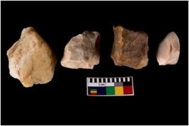 | Description / विवरण | Specimen of fluted cores showing impressions of blades removed from almost all the sides. |