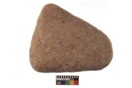 | Description / विवरण | Specimen of a hammerstone with battered periphery along with the circumference. |