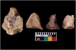 | Description / विवरण | Specimen of fluted cores showing impressions of blades removed from almost all the sides. |