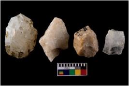 | Description / विवरण | Specimen of fluted cores showing impressions of blades removed from almost all the sides. |