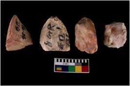 | Description / विवरण | Specimen of fluted cores showing impressions of blades removed from almost all the sides. |