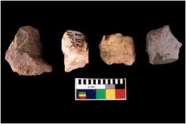 | Description / विवरण | Specimen of fluted cores showing impressions of blades removed from almost all the sides. |