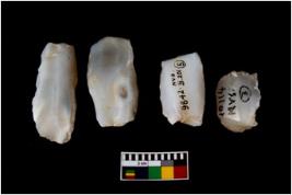 | Description / विवरण | Specimen of a fluted cores with several broad fluted marks indicating the detached blades from it. Some of them are tapering at one end. |