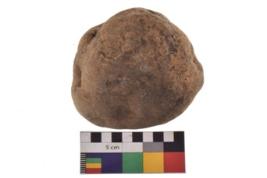 | Description / विवरण | Specimen of a hammerstone with battered periphery along with the circumference. |