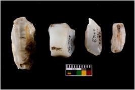 | Description / विवरण | Specimen of a fluted cores with several broad fluted marks indicating the detached blades from it. Some of them are tapering at one end. |