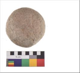 | Description / विवरण | Specimen of a sling ball with rough surface. |