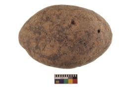 | Description / विवरण | Specimen of an oval hammerstone with battered periphery along with the circumference. |