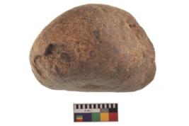 | Description / विवरण | Specimen of an uneven hammerstone with battered periphery along with the circumference. |