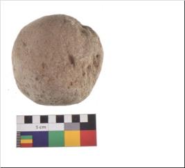 | Description / विवरण | Specimen of a sling ball with rough surface. |