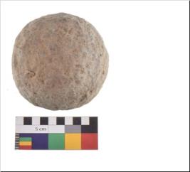 | Description / विवरण | Specimen of a sling ball with rough surface. |
