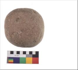 | Description / विवरण | Specimen of a sling ball with rough surface. |