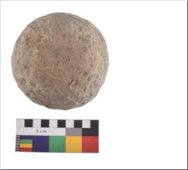 | Description / विवरण | Specimen of a sling ball with rough surface. |