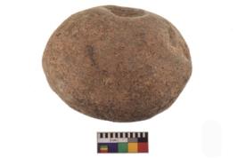 | Description / विवरण | Specimen of an round hammerstone with battered periphery along with the circumference. |