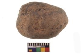 | Description / विवरण | Specimen of an uneven hammerstone with battered periphery along with the circumference. |