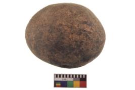 | Description / विवरण | Specimen of a round hammerstone with battered periphery along with the circumference. |