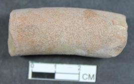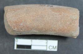| Description / विवरण | A terracotta plough probably cylindrical like in shape showing perforation. Its colour is dull red and surface is rough. |