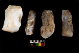 | Description / विवरण | Specimen of a fluted cores with few broad fluted marks indicating the detached blades from it. Some of them are tapering at one end. |