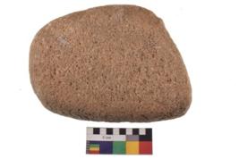 | Description / विवरण | Specimen of a hammer stone with battered periphery along with the circumference. |