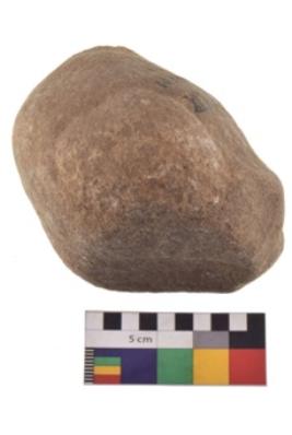 | Description / विवरण | Specimen of a hammerstone with battered periphery along with the circumference. |