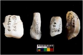 | Description / विवरण | Specimen of a fluted cores with few broad fluted marks indicating the detached blades from it. Some of them are tapering at one end. |
