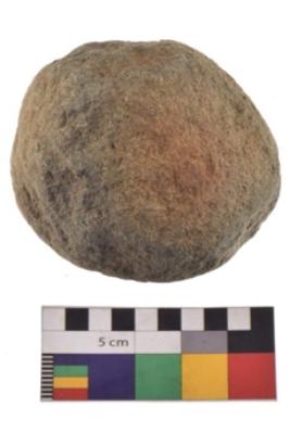 | Description / विवरण | Specimen of a hammerstone with battered periphery along with the circumference. |