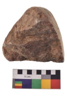 | Description / विवरण | Specimen of a hammerstone with battered periphery along with the circumference. |