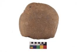 | Description / विवरण | Specimen of a hammerstone with battered periphery along with the circumference. |