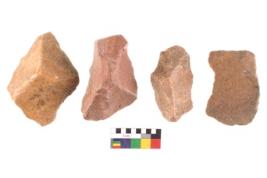 | Description / विवरण | Specimen of flake tool with prominent flaking marks. They are made up of a short flakes with sides trimmed and some are rectangular in shape. |