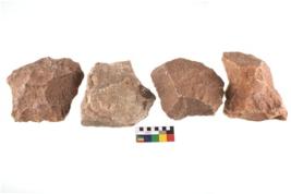 | Description / विवरण | Specimen of flake tools with prominent flaking marks. |